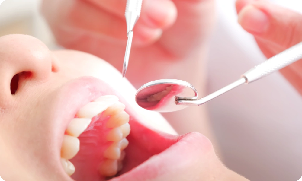 お口の状態を確認し、必要に応じて検査を行います。